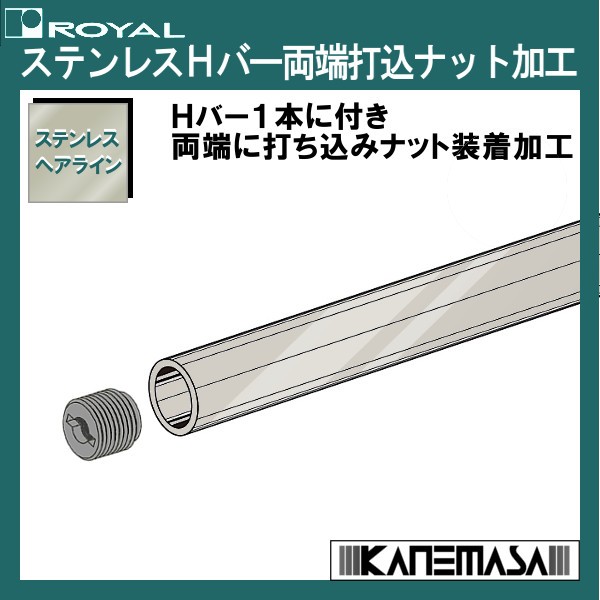 ステンレスHバー用両端ナット打込加工 ロイヤル HB-25・HB-32用打ち込みナット両端打ち込み加工