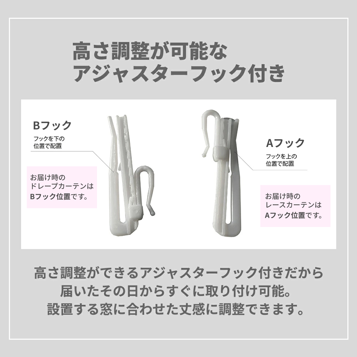 ◎すぐ使えて、洗濯可!アジャスターフック(厚地Bフック・レースAフック)、同色タッセル(厚地のみ)が付属されております。