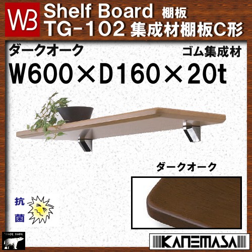 集成材棚板C形 白熊 シロクマ WB TG−102 サイズ:W600×D160×t20 ダークオーク