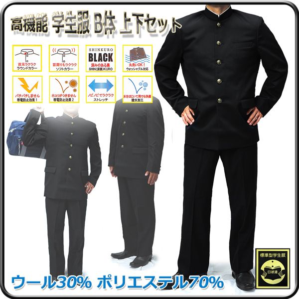 学生服 ニッケウール 男子 B体 学ラン 詰襟 つめえり ズボン裾上げ無料/高機能 男子標準学生服 B体 上下セット