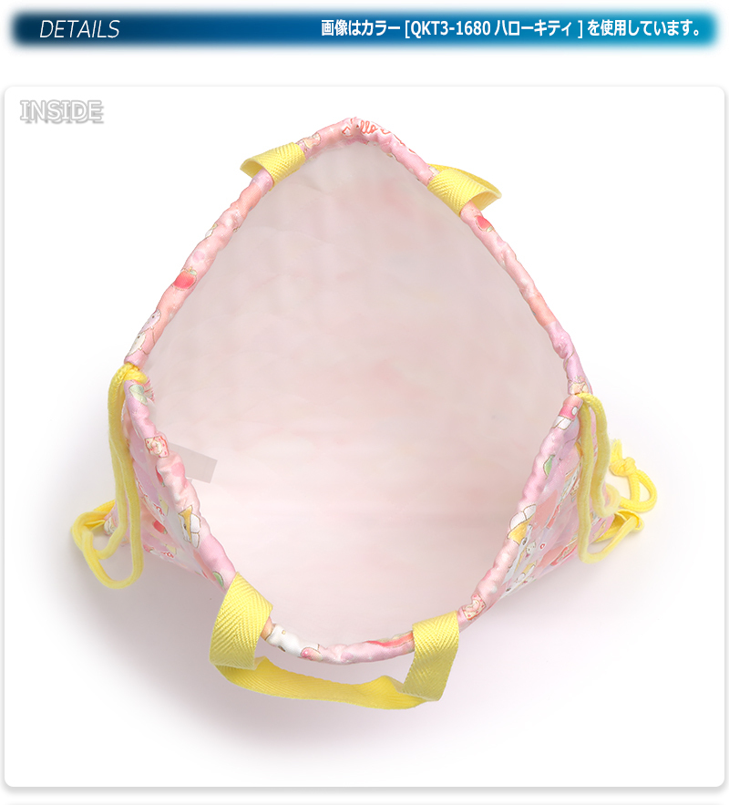 | 着替えやシューズ入れに便利なキルト素材のレッスンバッグです。キッズに人気のサンリオキャラクターがプリントされ、通園、通学におすすめです。 |