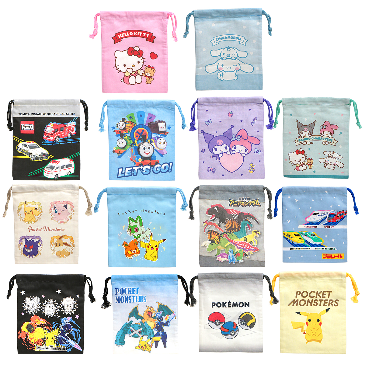 マルヨシ キャラクター プリント 巾着 S キッズ/子供/園児/男子/女子 巾着袋 ポケモン/トーマス/キティ/マイメロディ/トミカ/プラレール W約18cm×H約22cm
