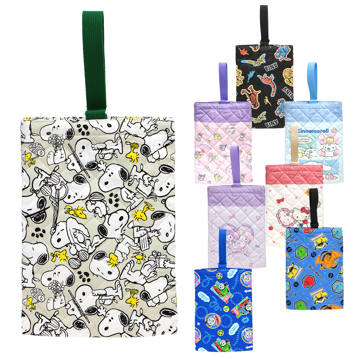 | キッズに人気のキャラクターがプリントされた、キルト素材のシューズバッグ。通園、通学時の上履き、運動靴入れとしておすすめです。 |