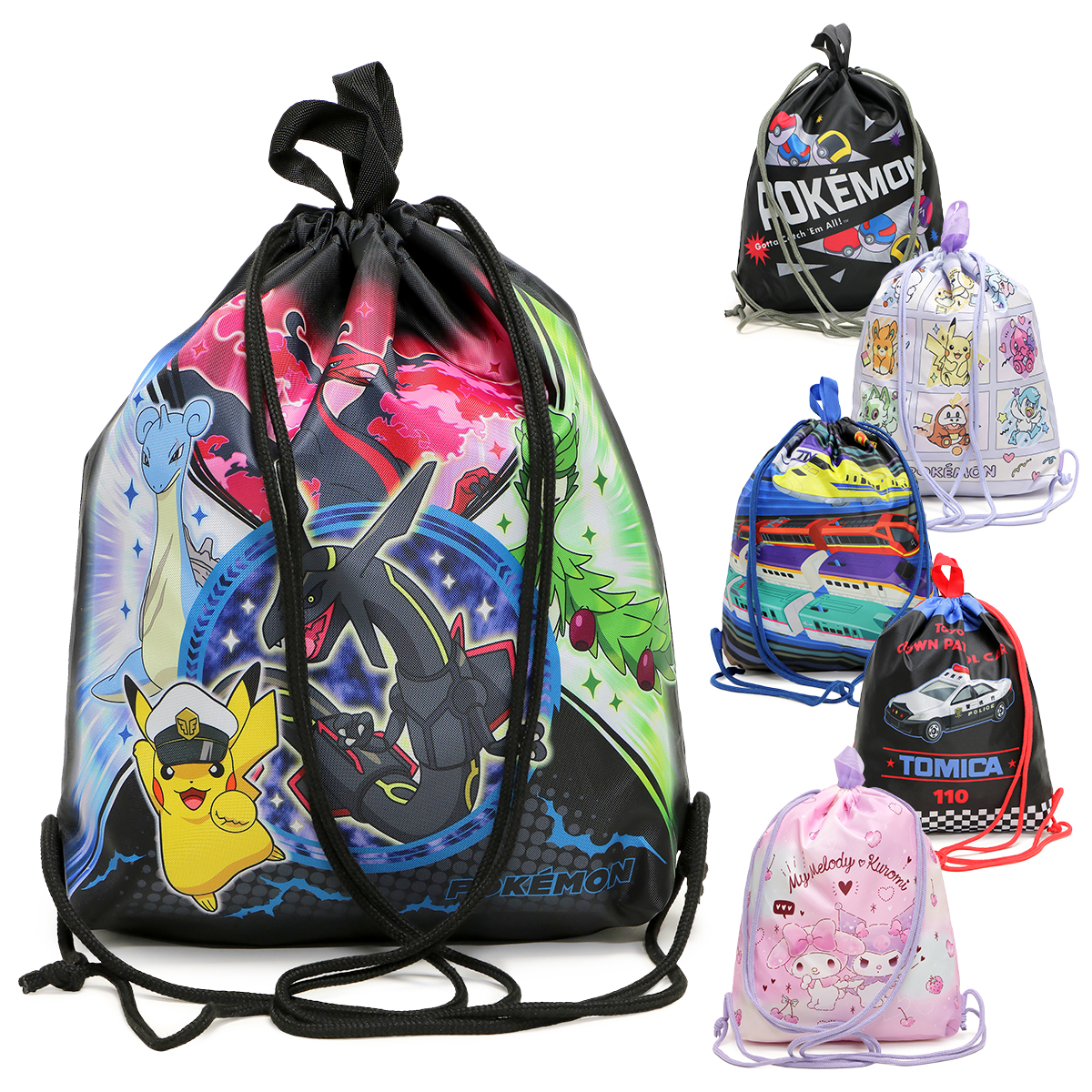 ナップサック ポケモン マイメロ クロミ プラレール トミカ 体操服 体操着入れ W約36cm×H約38cm×D約9cm