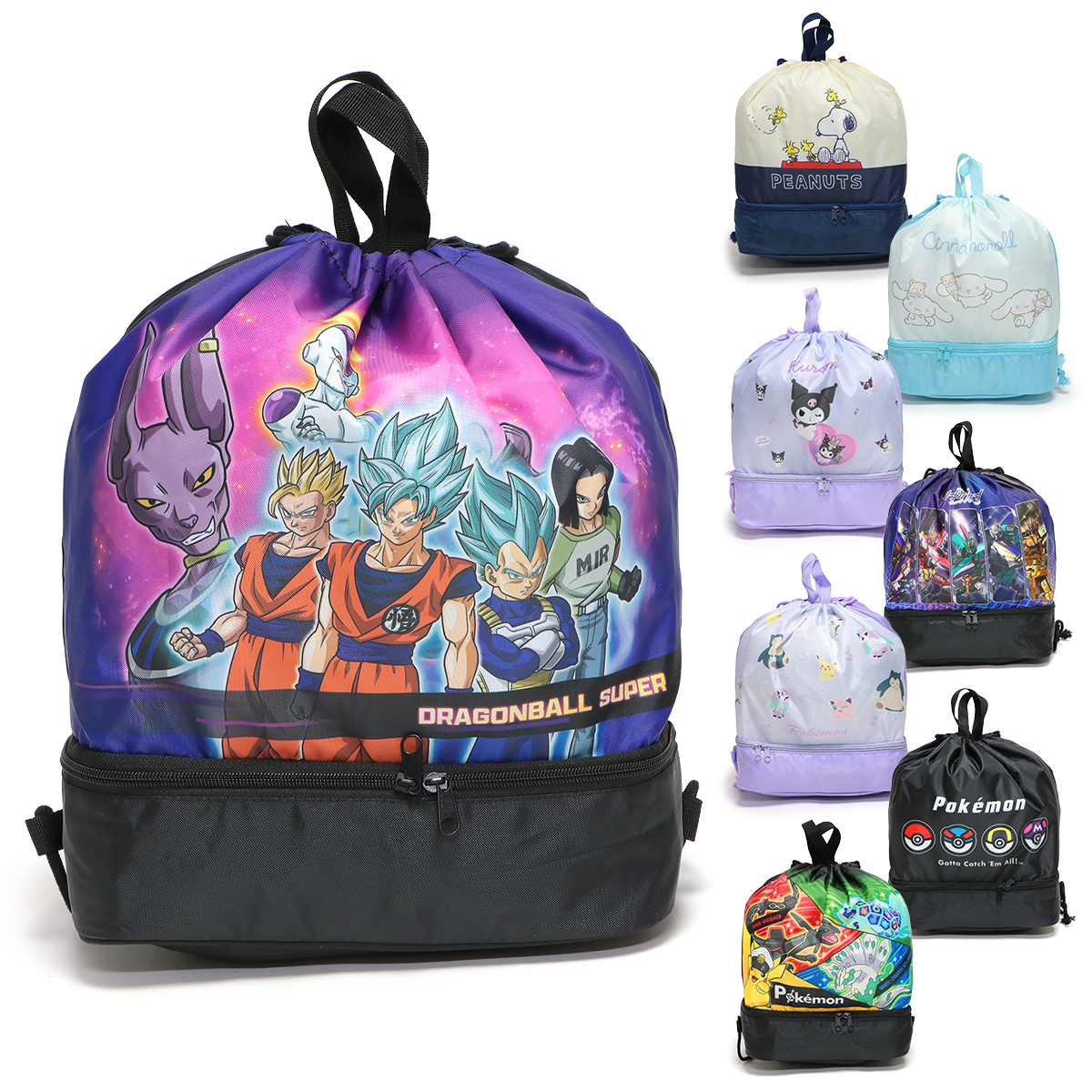 キャラクター プールバッグ スイムバッグ スイミングバッグ ビーチバッグ キッズ 子供 園児 小学生 ポケモン ドラゴンボール クロミ シナモロール スヌーピー シンカリオン ポケットモンスター ピーナッツ PEANUTS 男の子 女の子 リュック 巾着