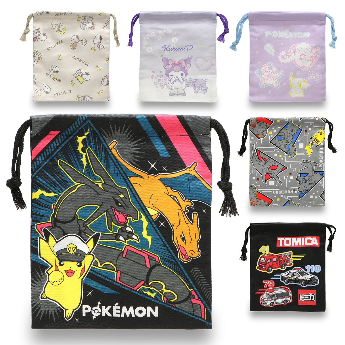 巾着袋 給食袋 ポケモン クロミ スヌーピー トミカ ポケットモンスター コップ袋 箸袋 コップ入れ キャラクター 小物入れ 小 Sサイズ 小学生 キッズ 子供 入学 入園 保育園 通園 通学