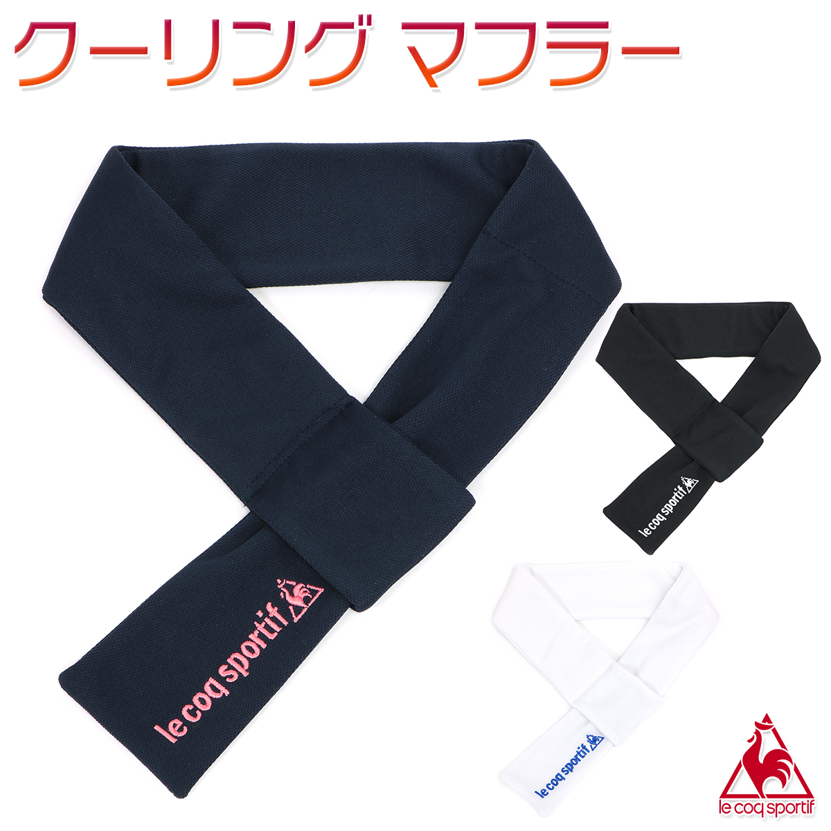 | 水を含ませることで冷たくなるベルオアシスを使用したルコックのクーリングマフラー。首元を冷やすことで快適にジョギングやウォーキング、スポーツ観戦など様々なシーンで使える暑さ対策アイテム。 |