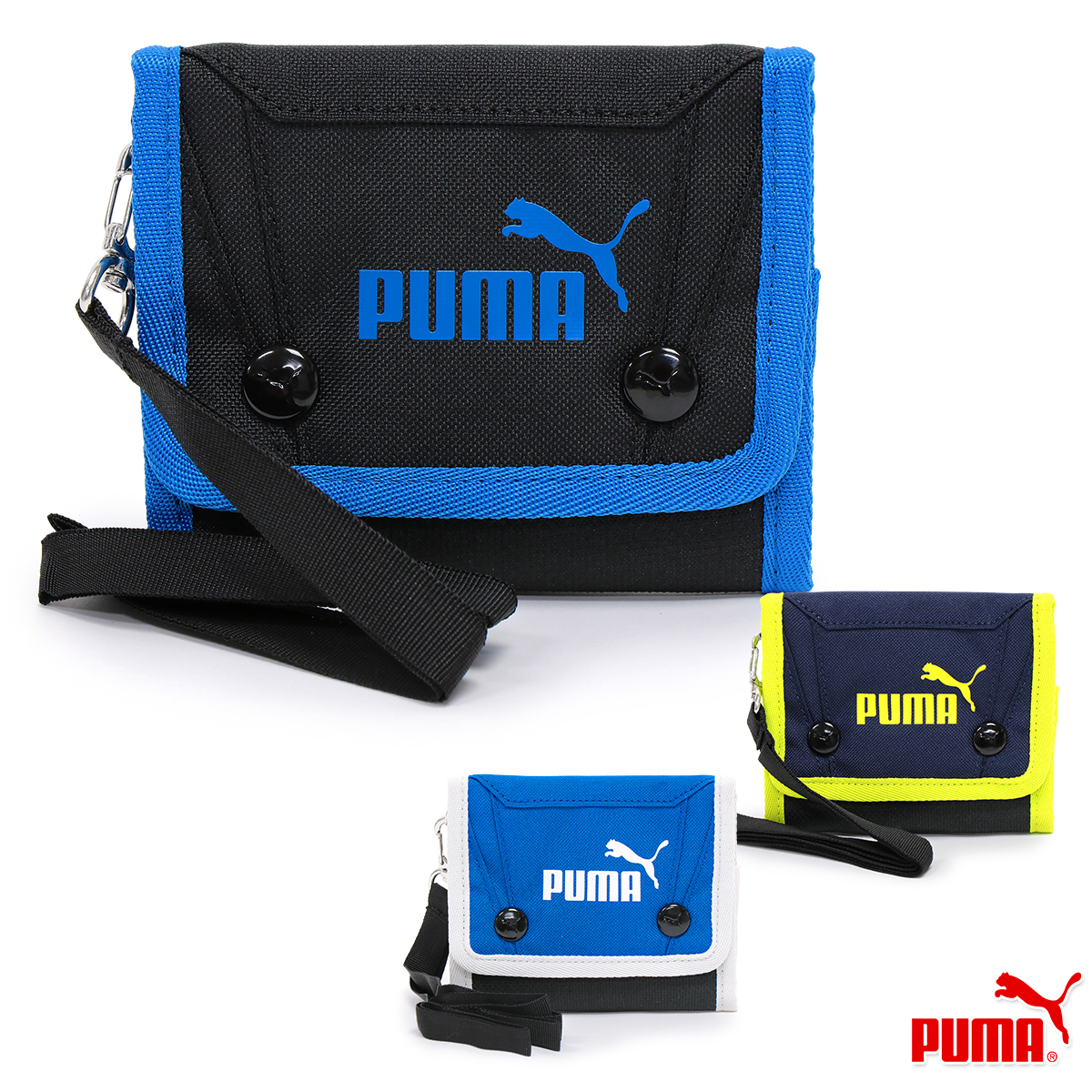 プーマ 財布 ウォレット 三つ折り ストラップ付 マジックテープ キッズ 子供 小学生 中学生 男子/アクティブ クリップ ウォレット 079036