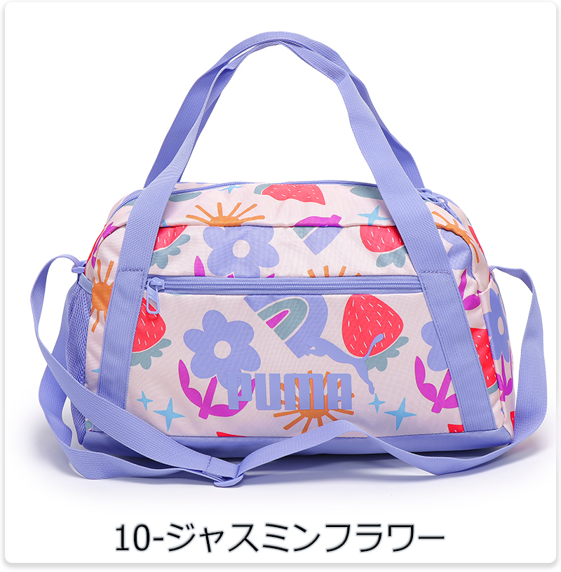 | かわいいプリントが施された、プーマのスポーツバッグ。小さめサイズでジムやフィットネス、キッズ、ジュニアの部活動など大人から子供まで幅広い年齢層の方にお使いいただけます。 |