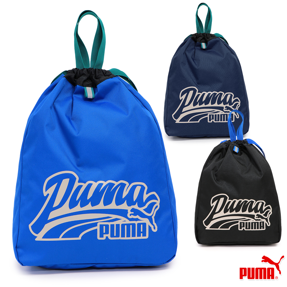 プーマ ナップサック キッズ/子供/小学生 ナップサック ブラック/ブルー/ネイビー W約34cm×H約45cm×D約12cm J20276