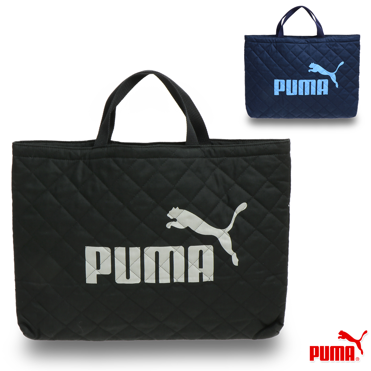 | プーマのキルト地レッスンバッグ。A4サイズも収納可能。塾やお稽古バッグとしておすすめです。 |