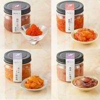 | 内容量 | 極粒とびっこ醤油漬 80g、黄金かれい縁側ユッケ風 105g、甲いかうに蟹味噌 90g、熟成いか塩辛 105g | |