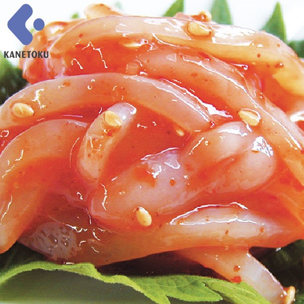 | 原材料名 | 甲いか(ベトナム又はマレーシア)、キムチ調味料(唐辛子、食塩、砂糖・異性化液糖、にんにく、還元水飴、りんごピューレ、玉ねぎ、砂糖、しょう油、たんぱく加水分解物、しょうが、発酵調味料、トマトペースト、オキアミエキス、魚醤)、還元水飴、砂糖、食塩、麦芽糖、発酵調味料、ごま、しょう油、醸造酢、昆布抽出物/調味料(アミノ酸等)、酒精、酸味料、増粘多糖類、着色料(パプリカ色素)、茶抽出物、 (一部に小麦・いか・ごま・大豆・りんごを含む) | |