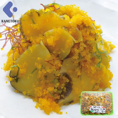 | 原材料名 | あかにし(ブルガリア)、かずの子、還元水飴、砂糖、カラフトししゃも卵、しょう油、 味付け昆布、発酵調味料、食塩、とびうお卵、麦芽糖、まふのり、たんぱく加水分解物、 グルコース、イソマルトオリゴ糖、キシロオリゴ糖、プロポリス、昆布抽出物/ 酒精、調味料(アミノ酸等)、酸味料、増粘剤(加工デンプン)、着色料(アナトー、銅葉緑素)、酵素、 着色料(アナトー、銅葉緑素)、酵素、 (一部に小麦・大豆を含む) |