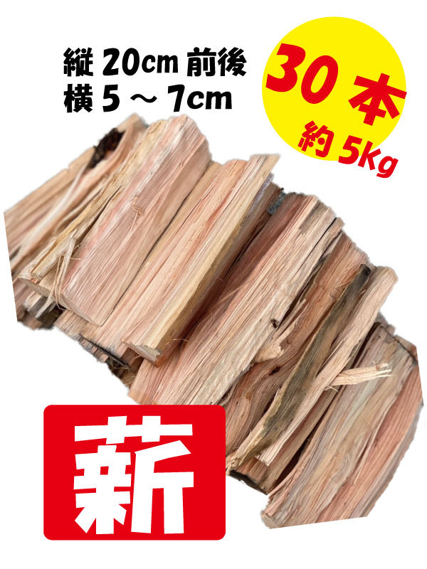 ひのき薪30本です。1本あたりのサイズは縦20cm前後 横5〜7cm前後