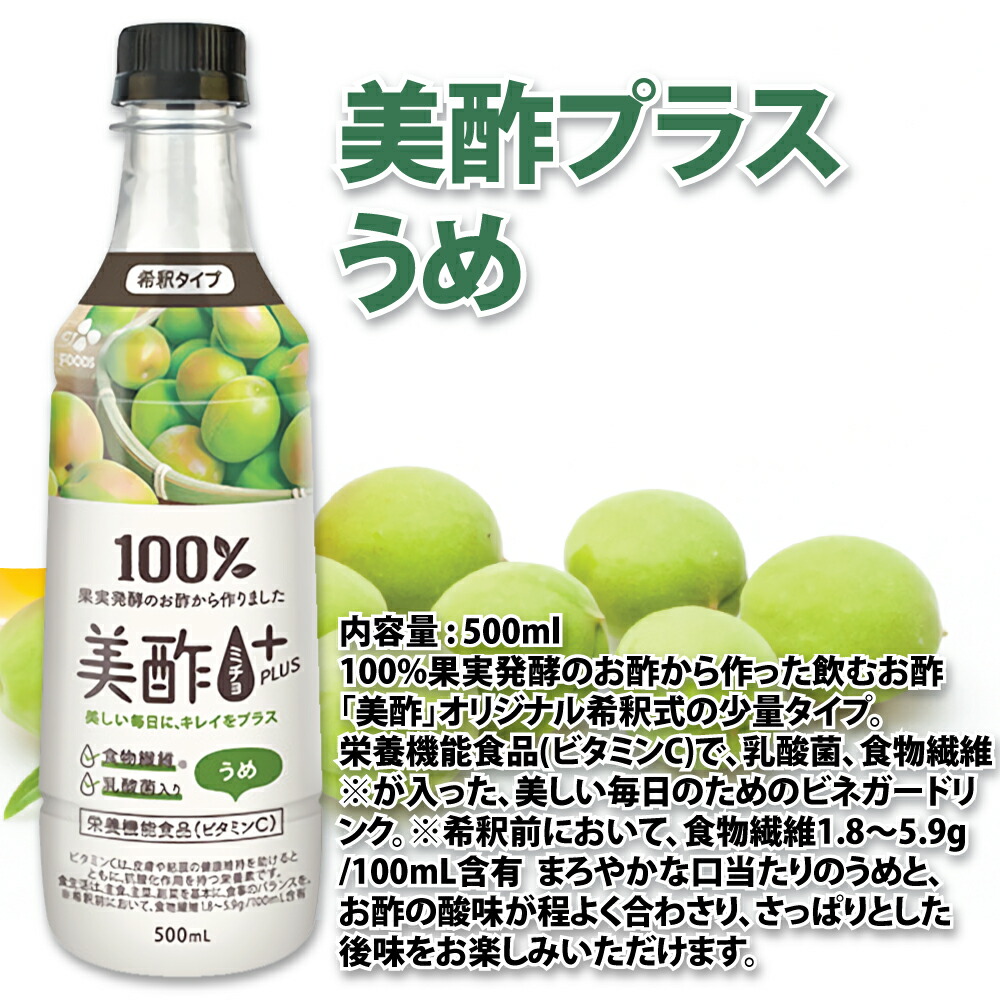 りんご酢(韓国製造)、フラクトオリゴ糖シロップ、果糖ぶどう糖液糖、水溶性食物繊維、うめ濃縮果汁、乳酸菌(殺菌)、デキストリン/ビタミンC、香料、甘味料(アセスルファムK、ステビア抽出物、スクラロース)