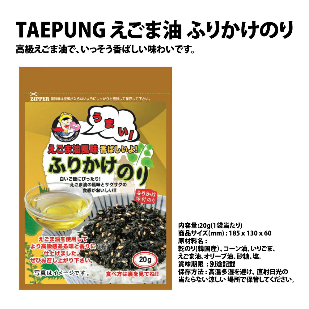 TAEPUNG えごま油 ふりかけのり 20g x 30袋 箱売り ぶっかけのり ピリ辛 超簡単 レシピ 海苔 韓国海苔 低カロリー 韓国海苔 ジャバンのり ワサビ わさび