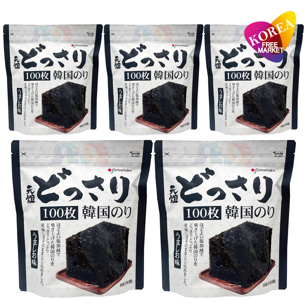 オリオンジャコー どっさり 韓国のり 100枚入 5袋セット うましお味 / チャック付き袋 Orionjako