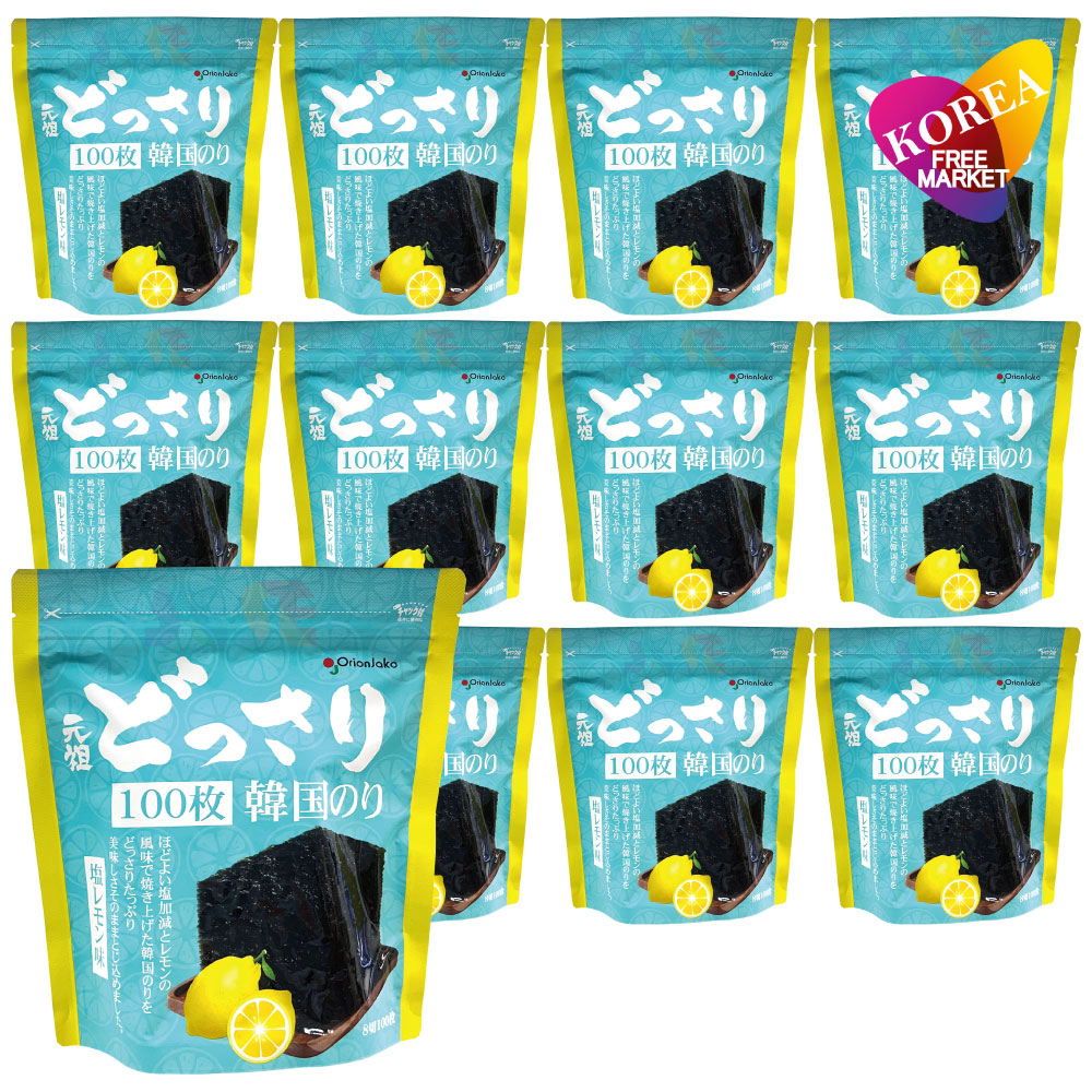 ■ 塩レモン味 : ほどよい塩加減とレモンの風味で焼き上げた韓国のりを、どっさりたっぷり美味しさそのままに詰め込みました。