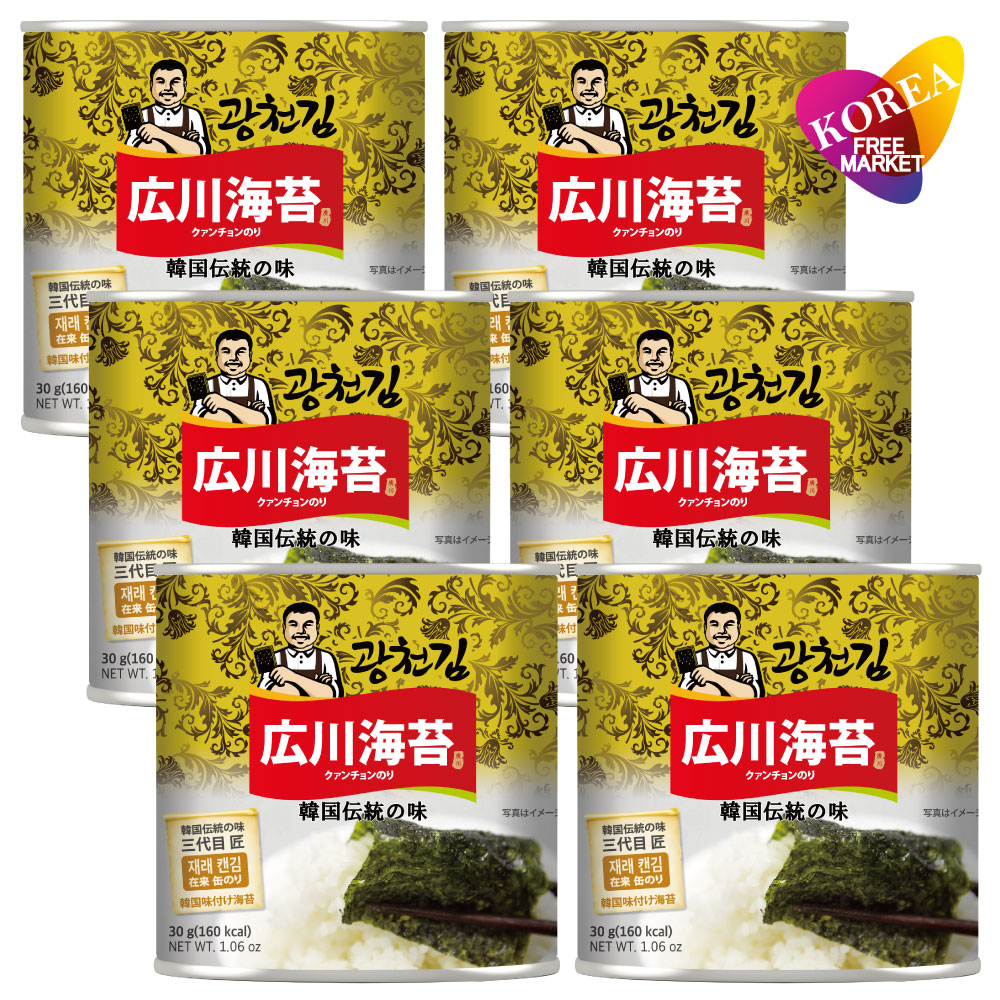 広川のり 缶 9切x54枚(30g) 6缶セット/ 在来 韓国 味付けのり クァンチョン カットのり 韓国のり 海苔