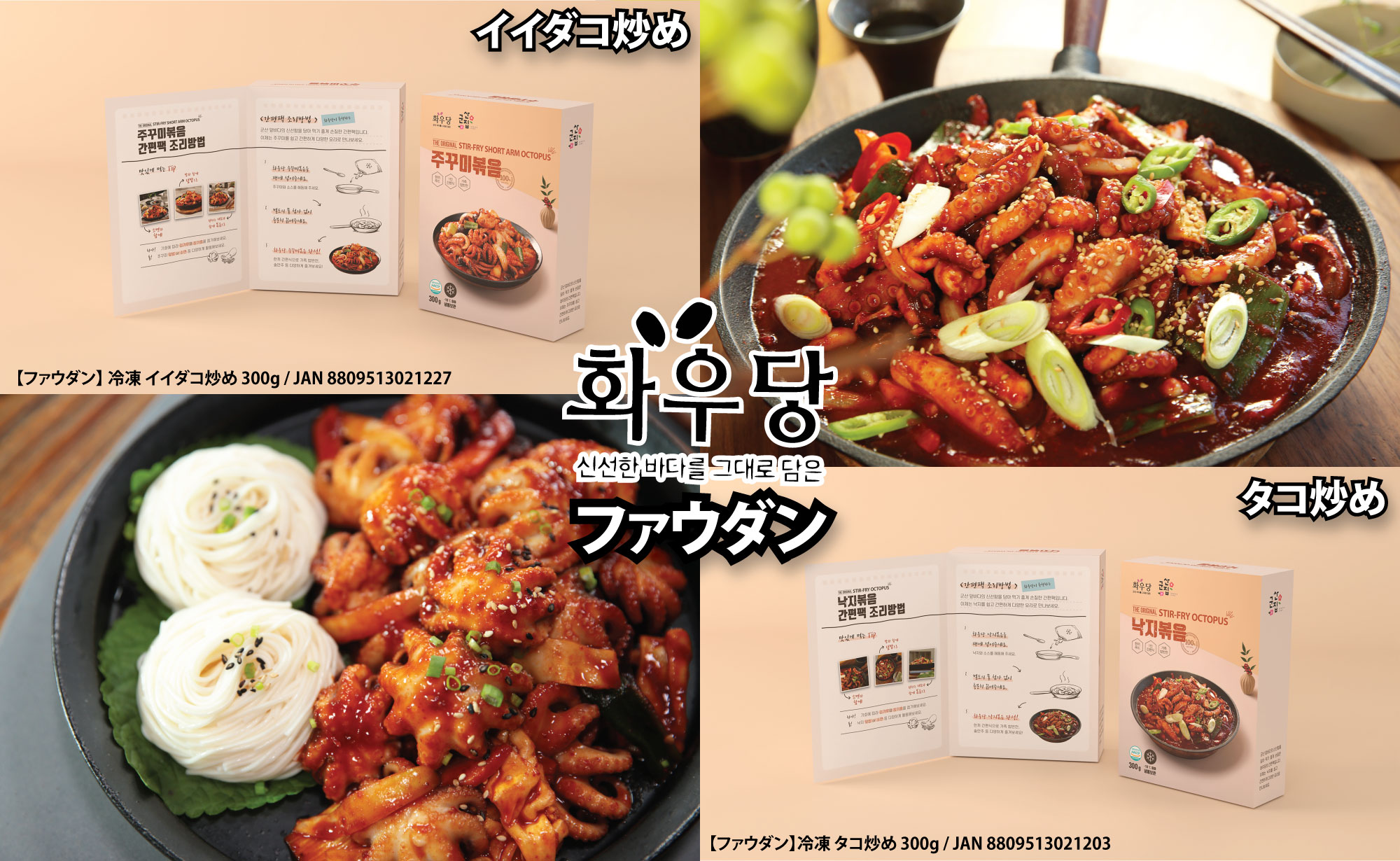 原材料名 : イイダコ、ソース[唐辛子粉、砂糖、にんにく、唐辛子油、トウモロコシ油、醤油、ごま油、黒胡椒]/調味料(アミノ酸等)、(一部に小麦・大豆を含む)