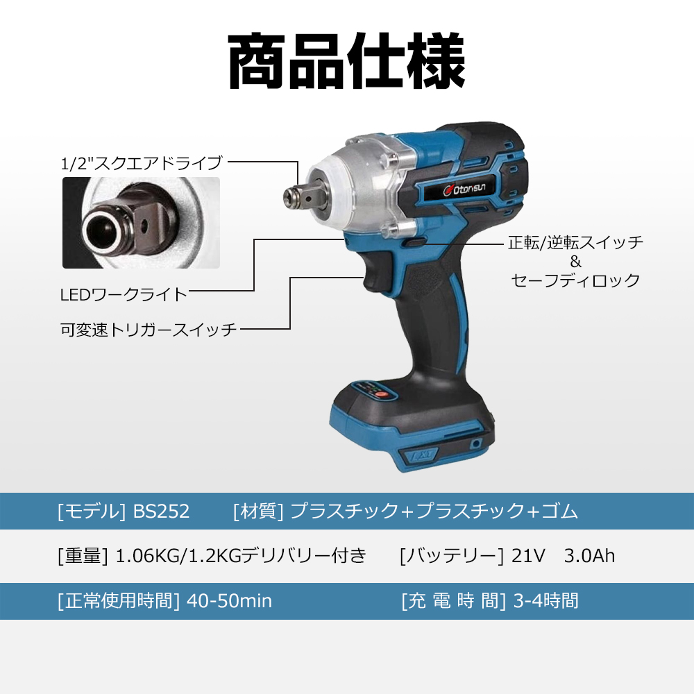 【正規品】インパクトレンチ 電動ドライバー 2025 電動ドリル タイヤ交換 マキタ バッテリー対応 充電式 18v/21v 無段変速 正逆転両用 電動工具 LEDライト付き