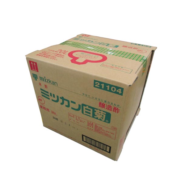 白菊Rは1951年にお寿司に合う米酢として生まれました。アジア、ヨーロッパ、アメリカなどに輸出されている、お寿司にぴったりの米酢です。米由来のまろやかな酸味と酒粕のコクがシャリに良く合います。容器は20Lバックインボックスタイプです。*本製品は、業務用専用製品です。500ml及び1.8L製品に、食塩を添加した品質です。食塩は、開封後、空気中の酢酸菌による品質劣化防止のために加えています。 内容量:20L BIB 【普通便】