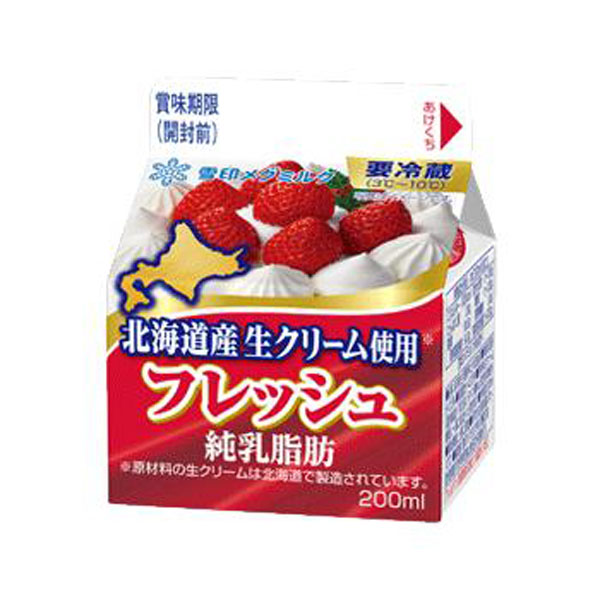 雪印メグミルク フレッシュ 北海道産 生クリーム使用 200ml