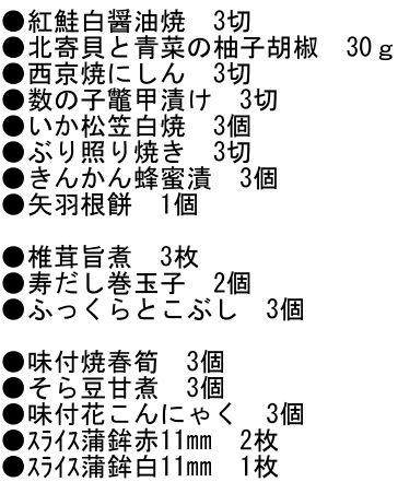 | 創業六十余年の和食料理食材専門店が厳選した新年を彩る三段重おせちです。 === 配送について下記をご確認ください。 === 本商品は他の商品と一緒にお届けできません。 他の商品と一緒にご注文の場合、別途送料が必要になる場合がございます。 本商品は2025年12月29日(月)到着指定にて出荷いたします。 30日、31日は冷蔵庫内で解凍してください。 時間帯指定は可能です。 お支払方法として、代金引換便がご利用いただけません。 === 壱の重 ![]() 弐の重 ![]() 参の重 ![]() | ||||||||