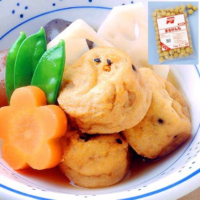 丸大豆から作った一口サイズのまるいがんもです。お好みのだし汁と一緒に煮込んでください。