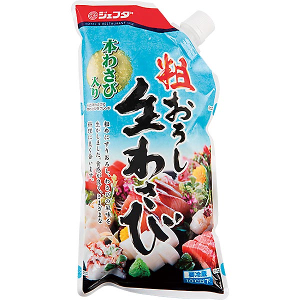 本商品は要冷蔵商品ですが色味を保つため冷凍状態でお届けいたします。粗めにすりおろし、わさびの風味を生かしました。辛みに優れた西洋わさびと、風味・香りに優れた本わさびをブレンド。使い切りやすいサイドキャップの冷蔵タイプとなります。内容量:750g【冷凍便】