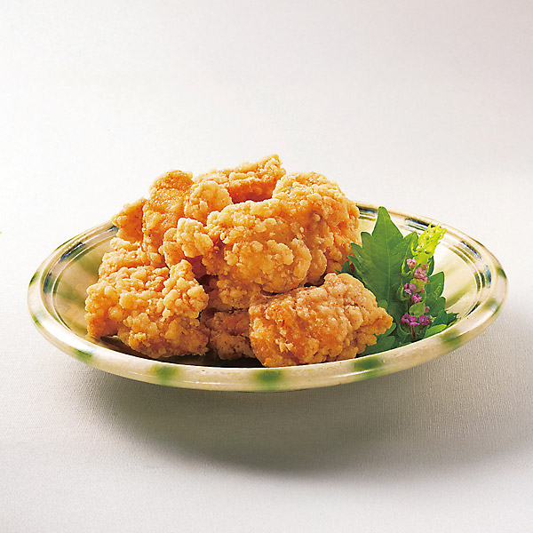 サクッと軽い食感の衣で包んだ竜田揚げです。醤油、しょうがを効かせた和風の味付けです。 1kgで約30個から40個前後入となります。 --- 調理イメージ