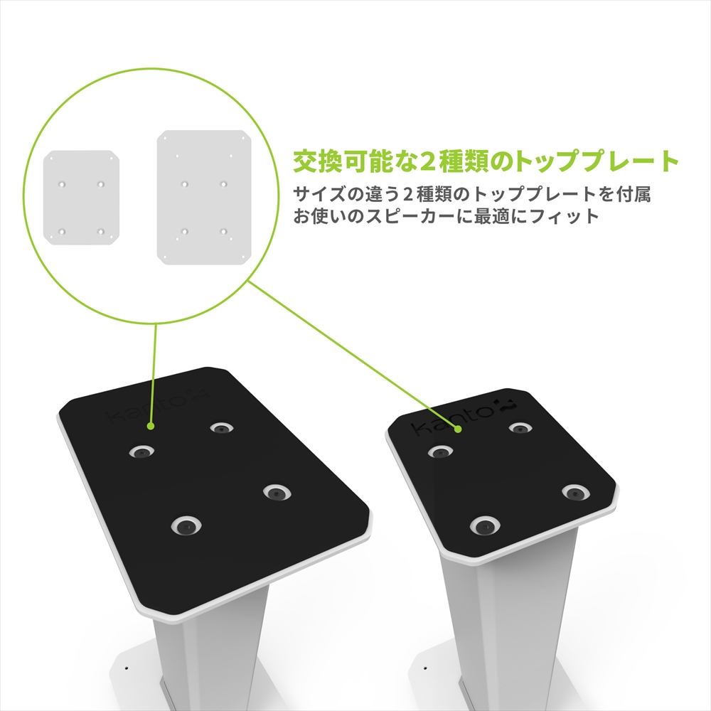 交換可能な2種類のトッププレートお好みのスピーカーに最適にフィットするよう、2種類のサイズのトッププレートを付属。