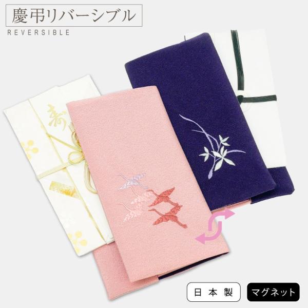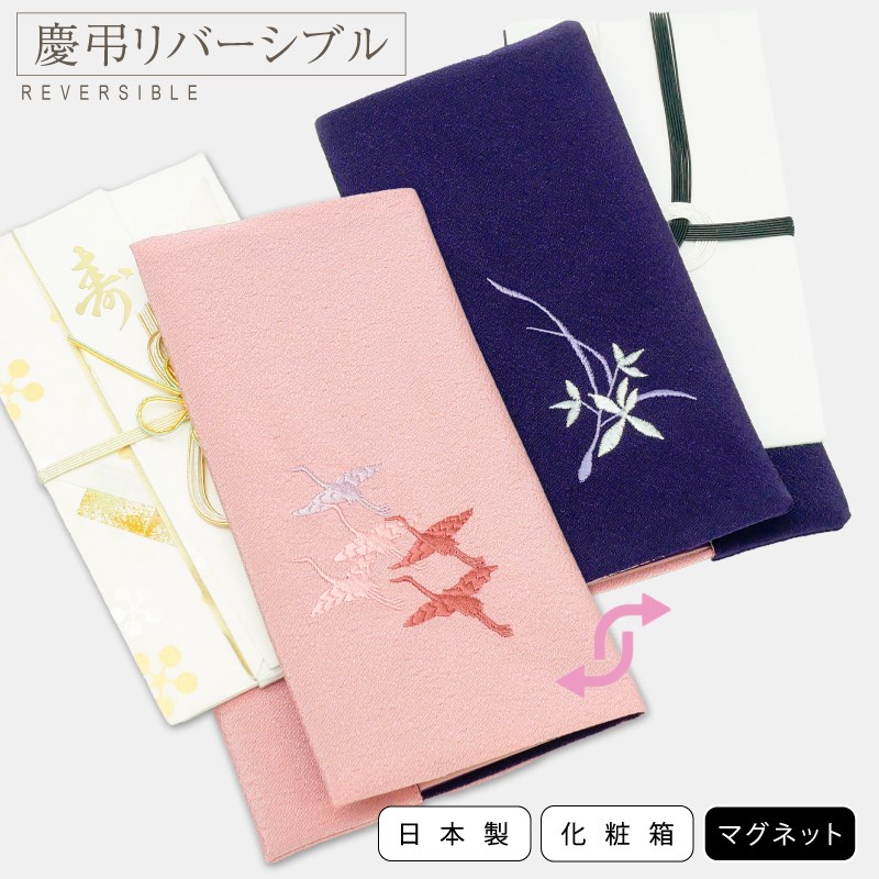 ふくさ 袱紗 慶弔両用 マグネット リバーシブル 結婚式 葬式 日本製 刺繍 おしゃれ 男性 女性 冠婚葬祭 留め具 磁石 金封 2way