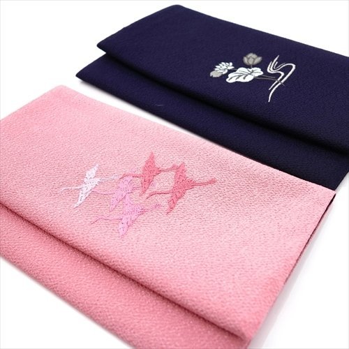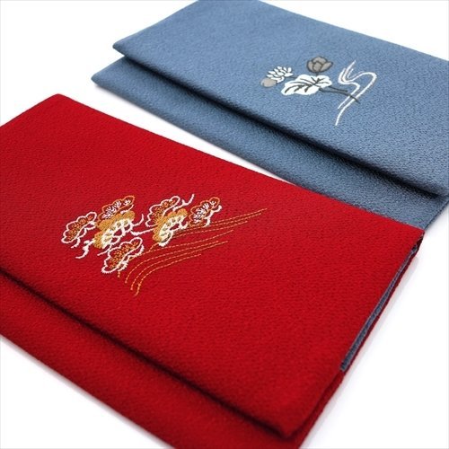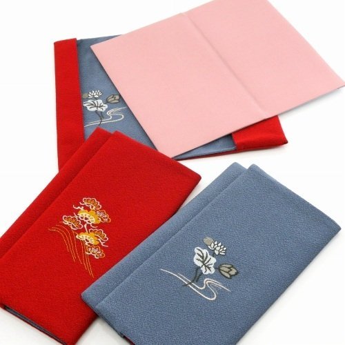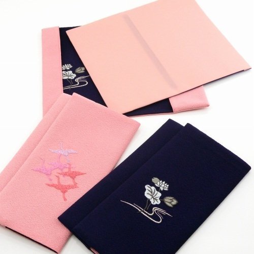 金封をはさむだけの、「はさみ袱紗」です。お一つお持ちになれば、慶弔両方にお使い頂けます。ソフトタイプで収納し易く便利です。お祝い事には松・鶴、お悔み事には蓮の伝統的な刺繍をあしらったデザインです。エンジとグレー、ピンクと紫で印象的で克つ落ち着いたお色に致しました。出し入れしやすい上部にスリット入り。全て当社オリジナル袱紗です。日本製。