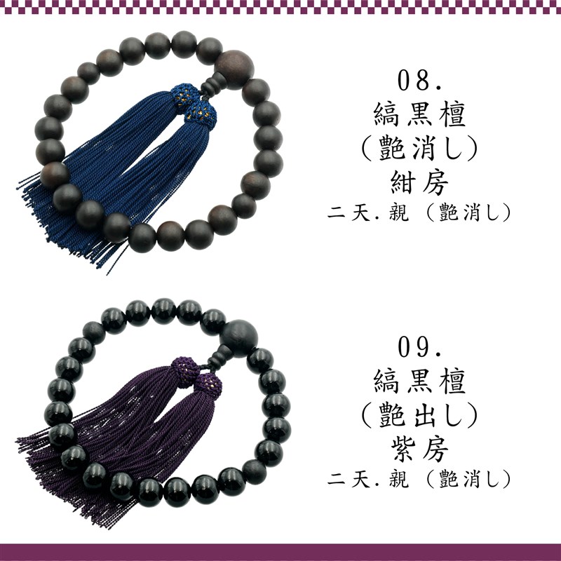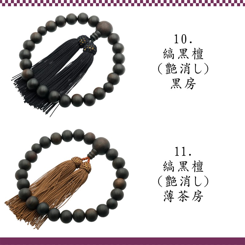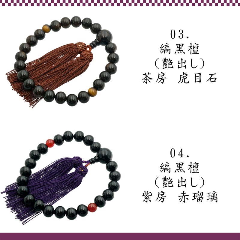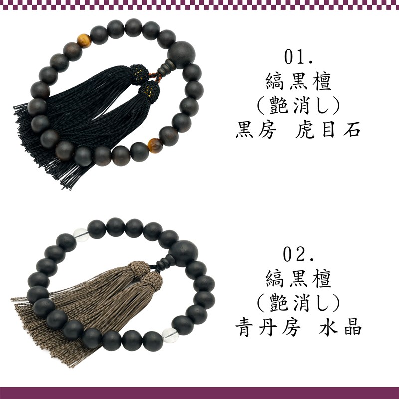 数珠 念珠 縞黒檀 日本製 京都製 略式数珠 葬式 法事 通夜 虎目石 水晶 瑠璃 パワーストーン