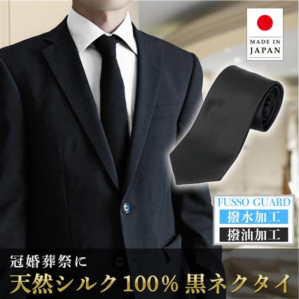 ネクタイ 黒(日本製)シルク100% 黒ネクタイ 絹 礼服 礼装 葬儀 葬式 法要 お通夜 弔事 法事 告別式 フォーマルネクタイ