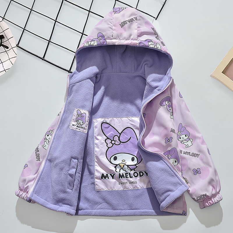 クロミ(kuromi) ジャケット ブルゾン キッズ アウター おしゃれ 女の子 プリント ウィンドブレーカー 子供服 ガールズ 可愛い フード 通学 通園 フード付き