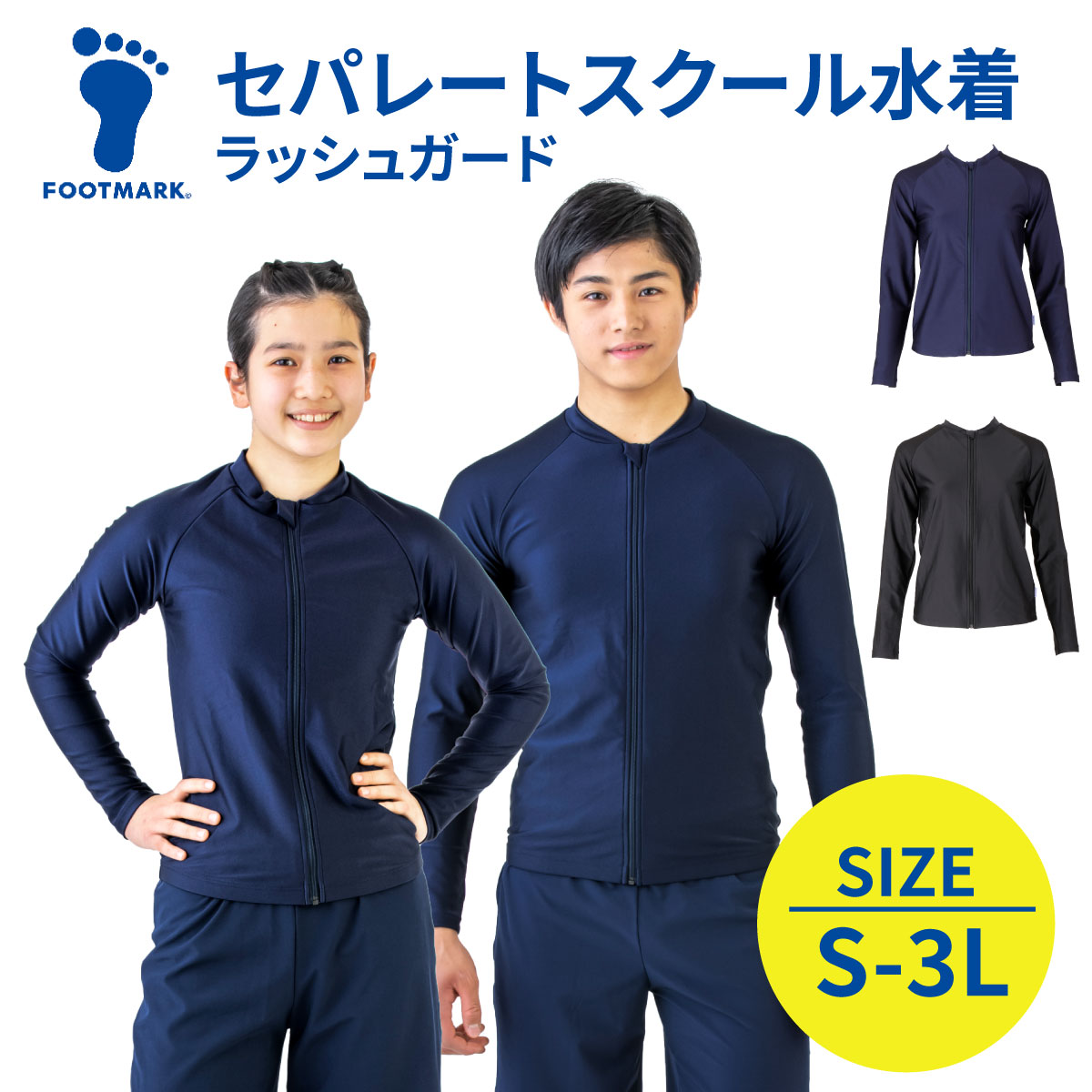 | 特長:【フットマーク 男女共用水着】男女問わないデザインの水着 ラッシュガード です。上下別売りなので、それぞれ別のサイズをお選びいただけます。胸、腰、お尻などはゆったりしたシルエットで、体型の違いが目立たないデザインです。上着は一枚で着て泳げます。ファスナーはロック機能式、引き手部分にはガードを付けています。撥水加工を施しているので濡れても軽く快適です。UVカット率99%なのでラッシュガードとして日焼け対策もできます。※サーフパンツ、トップスインナー、インナーパッドは別売りです |