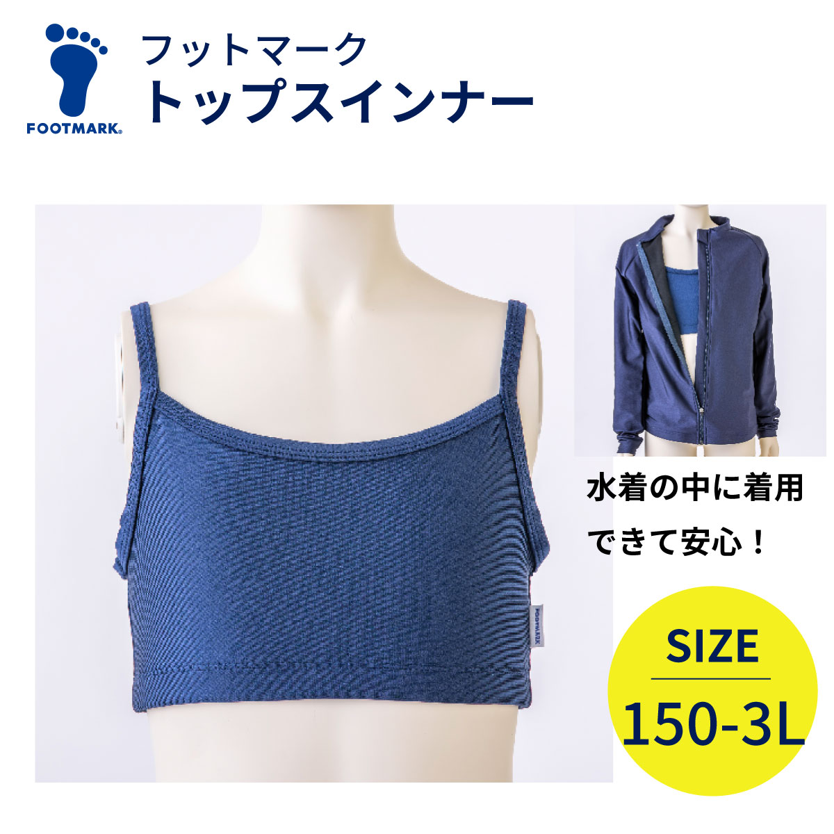 | 水着のトップスの中にご着用可能なトップスインナーです。ご着用いただくことでバストを守り、授業中も安心感が持てます。 |