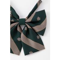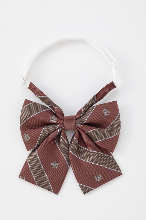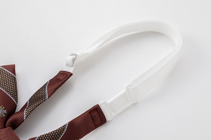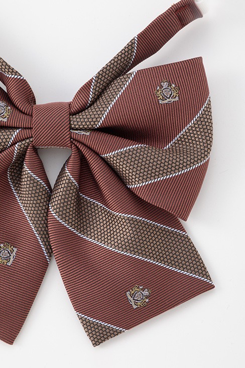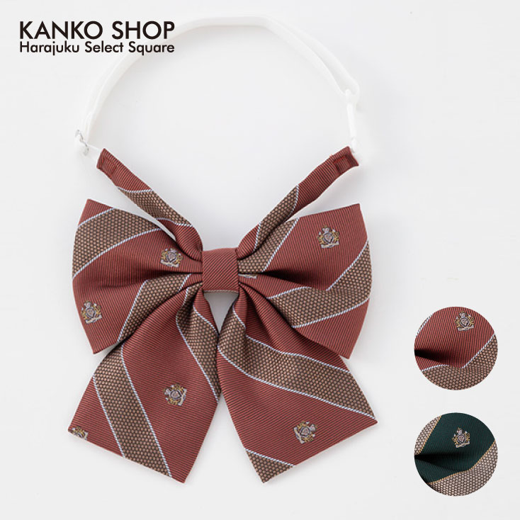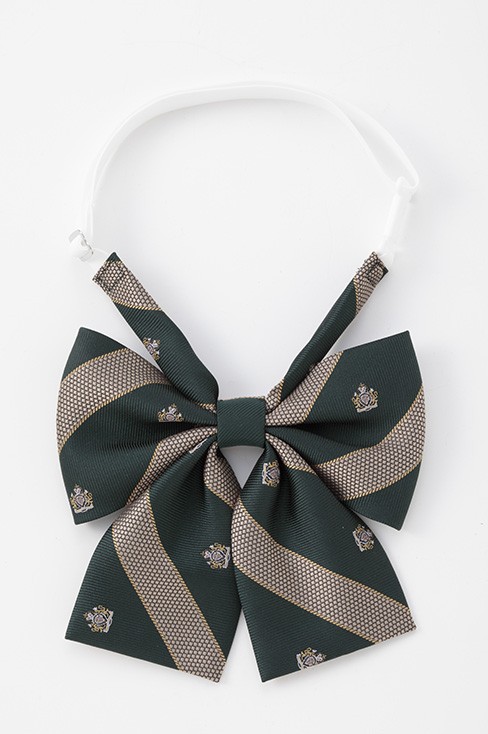 | クレスト柄が高級感のあるデザインです。人気のエンジとグリーンの2色展開のリボンです。首回りは軽さと薄さが特徴のフロントプッシュタイプを採用。操作も簡単で外れにくいライトバックルです。 |