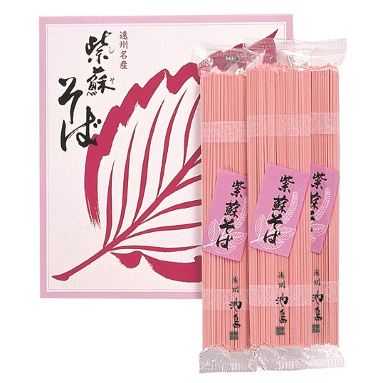 梅紫蘇の香り漂う、色鮮やかなこしのある乾麺紫蘇そばです