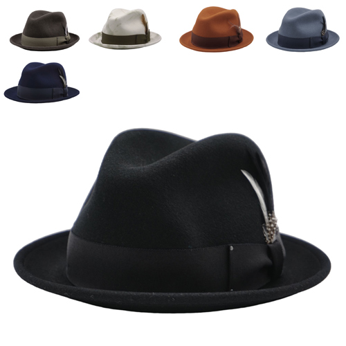 軟らかいウールフェルトを使用したもっともベーシックな定番型のフエルト中折れ帽。