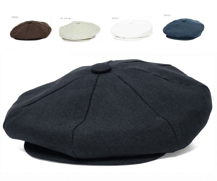 かなり大きめのシルエットでクラシカルなスタイルの涼しげなリネン素材のハンチングキャスケットです。被り心地が深く、非常に大きいのが特徴のお帽子です。内側のスベリ(額に当たる部分)がゴムですので、幅広いサイズに対応するようになっています。ジョンレノンが愛用していたことでも人気のモデルになります。