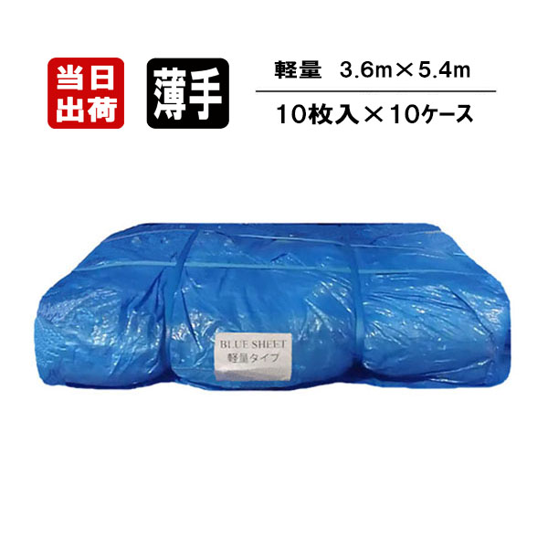 お得10セット(100枚)ブルーシート 薄手 軽量 3.6m×5.4m 10枚入×10CS 2間×3間 2K×3K 養生シート 使い捨て DIY 防水 雨よけ 日よけ 防水 カバー