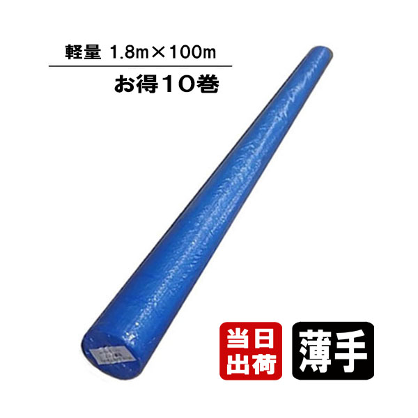 お得10巻セット ブルーシート 薄手 軽量タイプ 1.8m×100m巻 ロール 原反 巻物 床 養生シート 工事 使い捨て 野外 雨よけ 日よけ 防水 カバー 農業