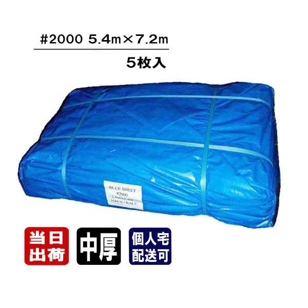 ブルーシート #2000 中厚 5.4m×7.2m 5枚入 3間×4間 3K×4K 養生 DIY 台風 防災 備蓄 雨水 雨よけ 日よけ 風よけ 対策 防水 防雪 カバー 農作業