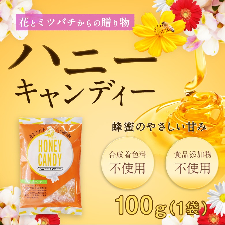 はちみつ 蜂蜜 ハチミツ 飴 キャンディ ハニーキャンディー 甘い蜂蜜の味と香りが楽しめるキャンディー。合成着色料、食品添加物を一切使用していないのでお子様のおやつにもおススメです。
