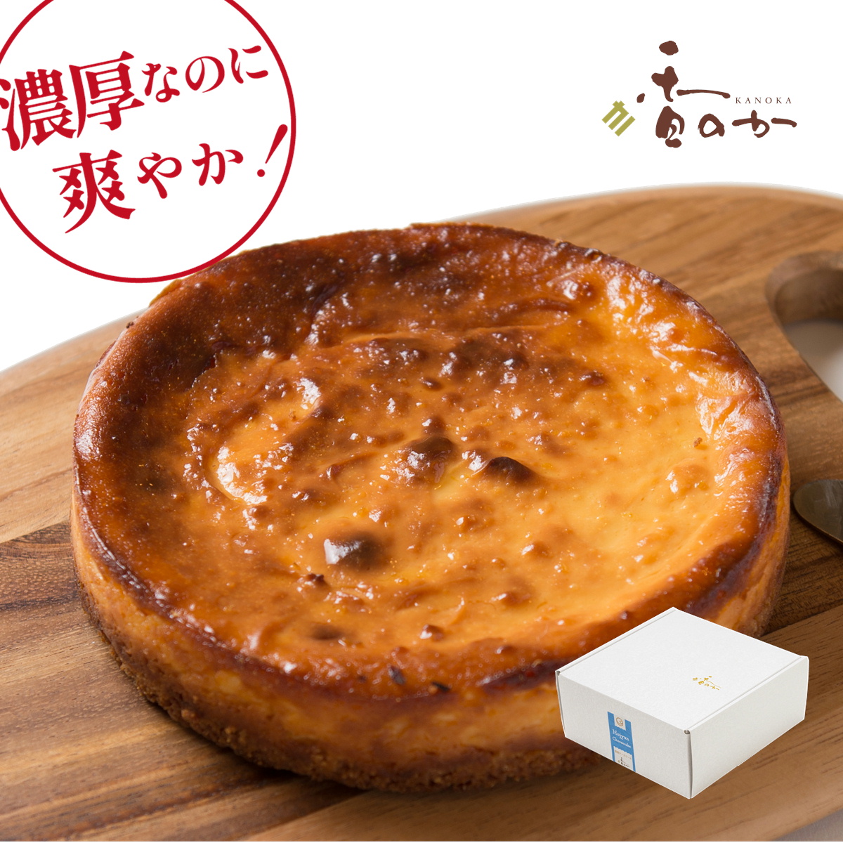フランス産のクリームチーズと北海道産の発酵バター・サワークリームを使い、濃厚なのに爽やかさを感じる絶妙のレシピでチーズケーキを焼き上げました。香のかの自信作です、素材のおいしさをお楽しみください。