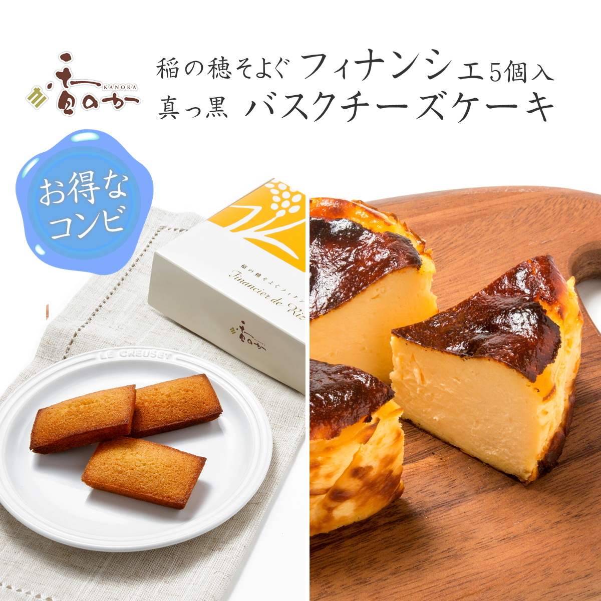 バスクチーズケーキ と フィナンシェ5個入 セット 誕生日 ギフト スイーツ プレゼント 真っ黒 チーズケーキ お取り寄せ 内祝 ホール 4号